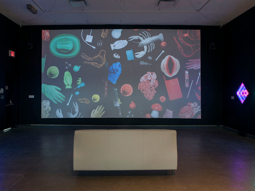 A Love poem to Unnecessary objects is a Wallpaper like meditation on vibrant matter, a direct sensual response to the call of objects and is pulled directly from the artist/hoarder’s obsessive accumulation of material items. The project uses digital collage techniques to combine stop-motion animation, compositing and found footage into rhythmic latex and pixel hybrids, which explore the possibilities of meaning within a consumer based value system.
